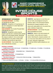 Marist Comprehensive Academy (MCA), Uturu, proudly announces the commencement of its Annual Inter-House Sports Competition, scheduled from 16th to 22nd November 2025 for the knockout stages, with the Grand Finale set for February 2026.